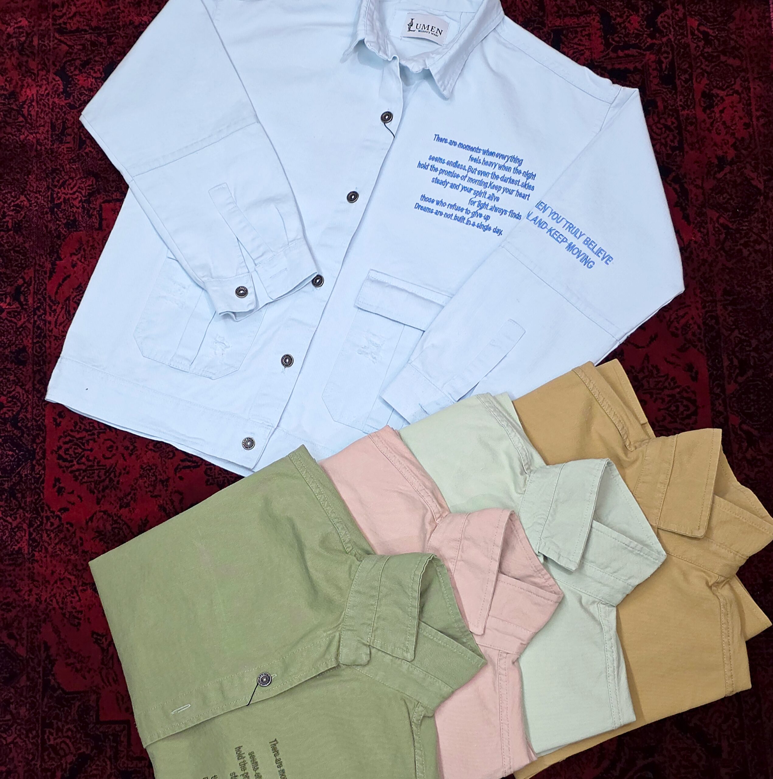 📌در واحد تولیدی لومِن تمامی محصولات پس از پشت سر گذاشتن مرحله دوخت نهایی، تحت فرآیند تخصصی شست و آنزیم شویی قرار میگیرند؛ اعمال این مرحله نه تنها باعث افزایش نرمی، لطافت و مقاومت بیشتر پارچه در مقابل سایش و پارگی میشود و همچنین ظاهری خاص و زیباتر به لباسها میبخشد، بلکه این شستوشو به پایداری رنگ و جلوگیری از آبرفت احتمالی لباسها کمک قابل توجهی میکند.